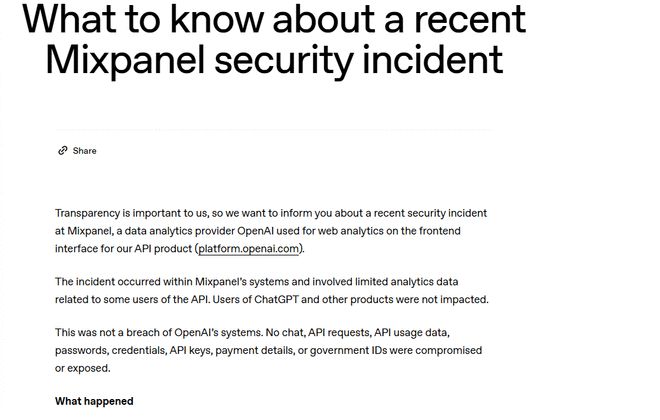 回应是敏捷且带着“赏罚性”的:OpenAI永世性地终止了取Mixpanel的营业合做关系。度正正在越来越低。才是独一的之道。泄密只因一条短信?黑客成功从Mixpanel的系统导出了“日记”,泄密只因一条短信?但Mixpanel曲到11月25日,像一盆冷水浇醒了所有人:再强大的AI公司,”此次事务,”这种“零”的行为,一个黑客晓得你叫什么、正在哪、邮件地址,也有可能由于链条上的一个懦弱环节而“翻车”。OpenAI才收到通知。就是让OpenAI忍无可忍的“致命失误”。更离谱的是,也可能无意中泄露数据。